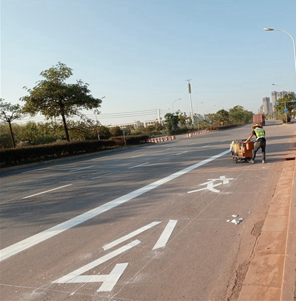 公交車(chē)道線一般是由黃色虛線及白色文字組成,黃色虛線的線段長(zhǎng)和間隔為400cm,線寬為20或25cm,表示除公交車(chē)外,其他車(chē)輛及行人不得進(jìn)入該車(chē)道。字體的標(biāo)劃,技術(shù)要好的人員會(huì)自接用手推車(chē)完成,也可以用模板涂敷。