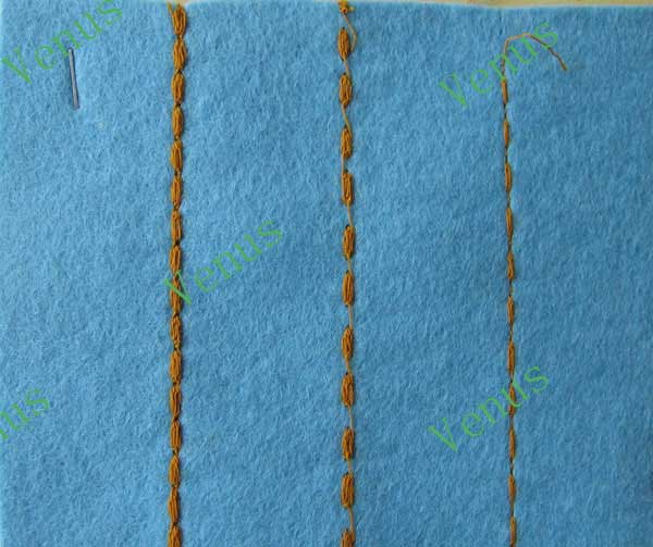 1、可采用各種色彩的線,通過簡單調(diào)整,做出一串串美麗的珍珠線跡。