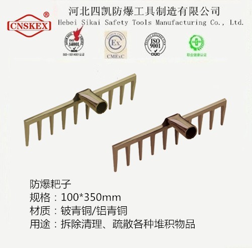 河北四凱防爆耙子,用于拆修清理,疏散各種堆積物品。在易燃易爆氣體環(huán)境中作業(yè)不產(chǎn)生機(jī)械火花。