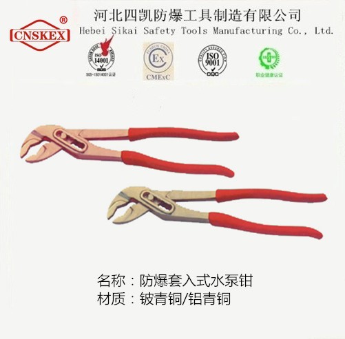 河北四凱防爆水泵鉗,材質:鈹青銅,鋁青銅 在易燃易爆氣體環(huán)境中作業(yè)不產生機械火花。