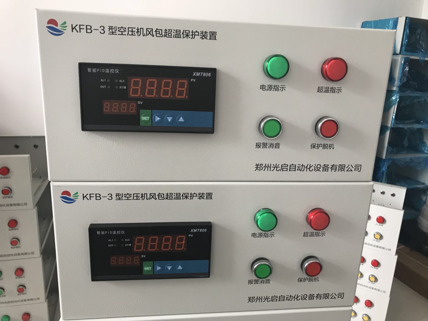 光啟kfb-3型型空壓機(jī)風(fēng)包超溫保護(hù)裝置可為為一控一及一控二還有一控多,高一臺kfb-iii空壓機(jī)風(fēng)包超溫保護(hù)裝置能控制到六臺空壓機(jī)六臺儲氣罐。只要是螺桿空壓機(jī)都能使用。