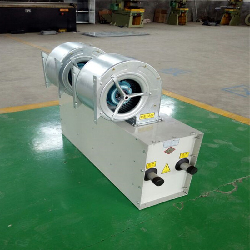 離心式熱風(fēng)幕機(jī): 該型熱空氣幕是風(fēng)機(jī)采用低噪聲離心雙吸風(fēng)機(jī),風(fēng)壓大、封門效果好;空氣加 熱器采用高純度無(wú)縫鋼管與正弦波形鋁制散熱片,具有耐腐蝕、耐高壓、傳熱穩(wěn)定、 傳熱系數(shù)高、體積小、重量輕、使用壽命長(zhǎng)等優(yōu)點(diǎn)。殼體為彩色靜電噴塑或不銹鋼 拉絲板,整體造型簡(jiǎn)潔流暢。噴塑板殼體有多種