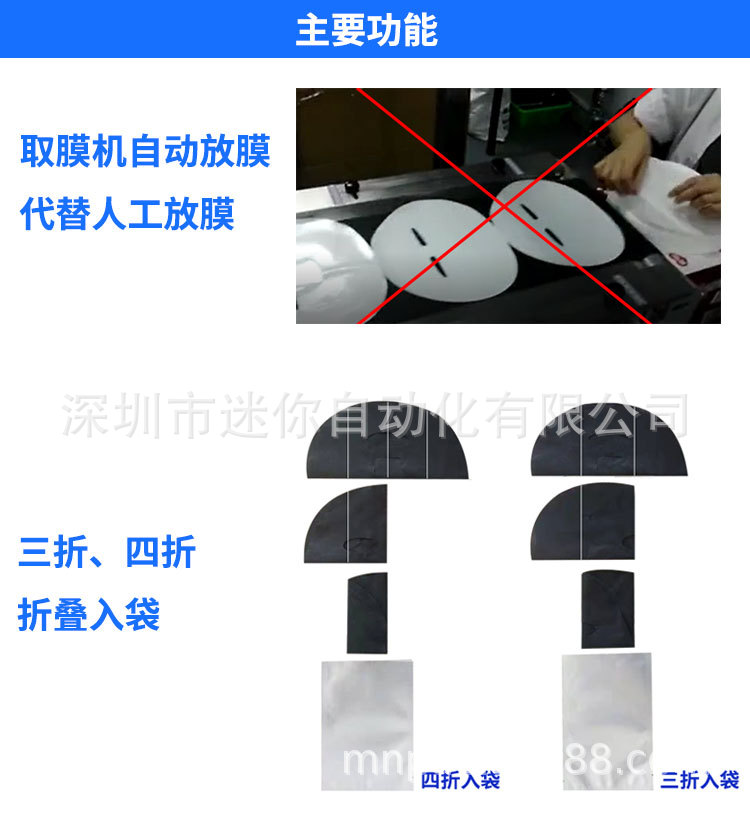 工作流程:取膜-輸送-折疊-入袋-輸出