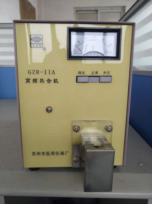 目前, 血站、醫(yī) 院、生物制品行業(yè)等單位,普遍采用一次性專用塑料袋來(lái)采集和保存血液、血制品及生理鹽 水。為滿足這些專用塑料袋封口的特殊要求, 我廠研制、生產(chǎn)了gzr系列自動(dòng)高頻熱合機(jī)。該產(chǎn)品是根據(jù)聚氯 乙烯管道在高頻電場(chǎng)作用下產(chǎn)生極化而發(fā)熱粘合的原理來(lái)設(shè)計(jì)的,具有無(wú)污染、不破壞液體的質(zhì)量、封口可靠不滲漏等優(yōu)點(diǎn)。進(jìn)口繼電器的采用,提高了可靠了性;熱合頭的改良設(shè)計(jì),使封口冷卻后,不用剪刀可以隨時(shí)拉開。