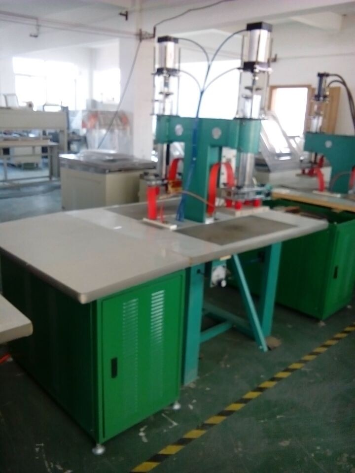 1高頻機主要采用雙頭腳踏氣動式操作,操作工作臺面板分別為機頭的兩邊,操作方式主要是由操作人員右腳踏定位和左腳開關(guān),焊接過程由時間自動控制,左右機頭交替使用。
