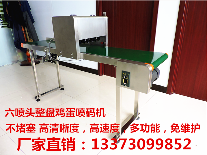 這是一款為蛋殼上噴碼的高清晰度,高速度,多功能,免維護(hù)的一款六噴頭蛋品噴碼機(jī),可以直接放蛋托上同時(shí)打印。