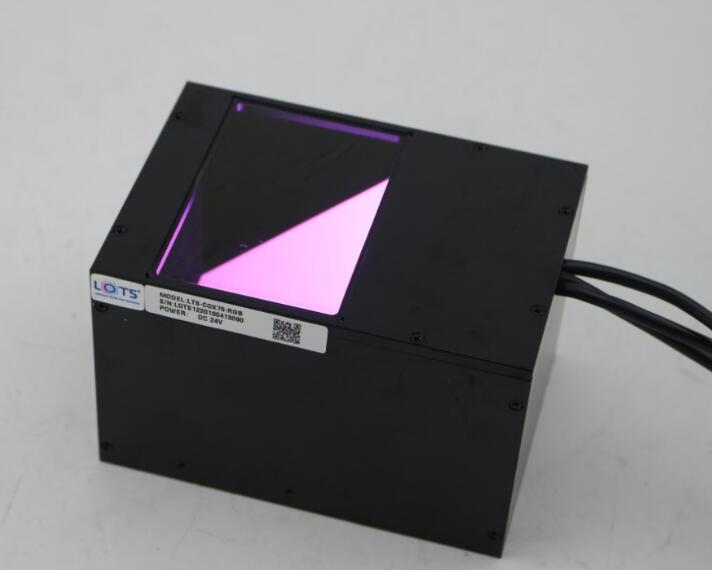 同軸光源主要由高密度led和分光鏡組成。led發(fā)出光經(jīng)過分光鏡后,跟ccd和相機在同一軸線上,可以有效消除圖像的重影,適合光潔物體表面劃痕的檢測。
