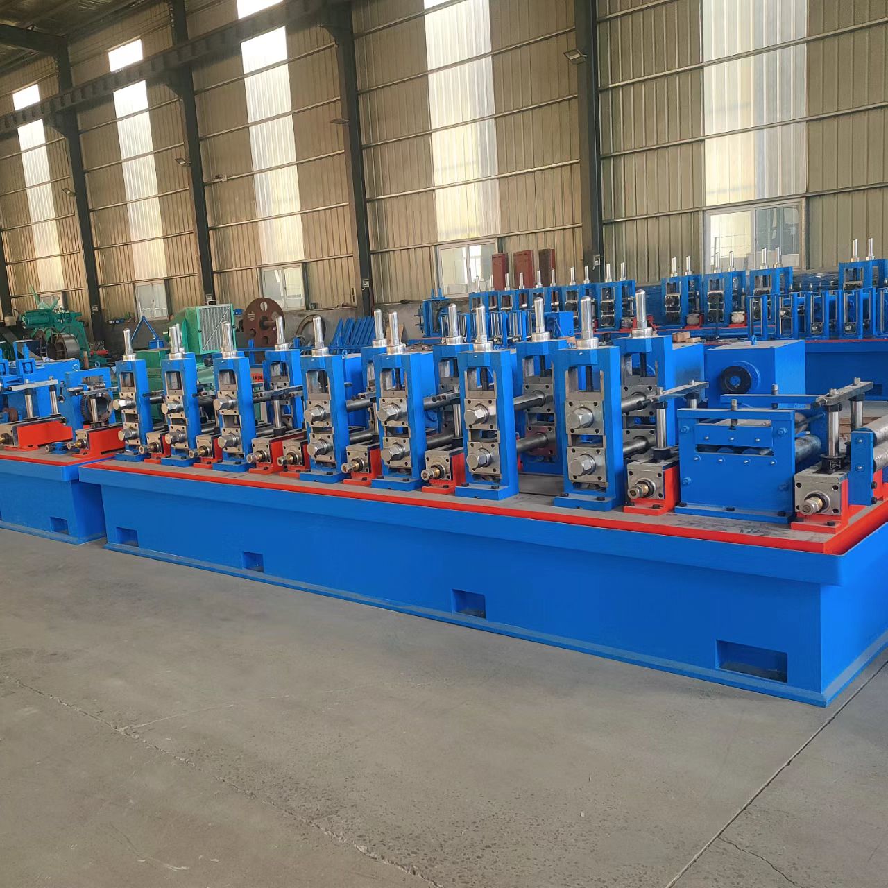 以帶鋼為原料,經(jīng)開卷、成型、高頻焊接、解決焊瘤、定徑、校直、切斷等一系列制管工序制造出圓鋼管或各樣式一行鋼管的成套設(shè)備。采用輥式成型將帶鋼冷彎加工成圓坯,通過高頻感應(yīng)加熱將焊縫擠壓形成圓管,在經(jīng)過定徑加工生產(chǎn)出各樣式標(biāo)準(zhǔn)規(guī)格的圓管、方矩形管。