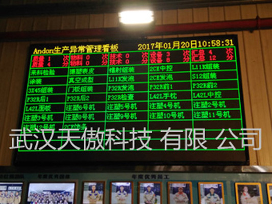 武漢天傲科技有限公司專注于為生產(chǎn)型企業(yè)設(shè)計(jì)、制造無線/有線andon安 燈系統(tǒng)、電子看板系列、電子貨架/倉儲(chǔ)系統(tǒng)、工廠綜合生產(chǎn)信息看板系統(tǒng)、生產(chǎn)線實(shí)時(shí)電子/液晶看板、設(shè)備采集及監(jiān)控系統(tǒng)、智慧工廠目示化管理系統(tǒng)、精益化管理系統(tǒng)等軟硬件產(chǎn)品.