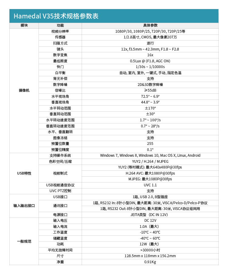 耳目達(dá)v35是一款usb會(huì)議視頻系統(tǒng)攝像頭,該產(chǎn)品采用12倍光學(xué)變焦+16倍數(shù)字變焦鏡 頭,擁有72.5°水平視角,通過云臺旋轉(zhuǎn)可實(shí)現(xiàn)340°平移和60°傾斜,全面覆蓋會(huì)議空間。同時(shí)支持1080p全 高清視頻通話,內(nèi)置自動(dòng)白平衡及背光補(bǔ)償功能,在低照度環(huán)境下也能夠呈現(xiàn)清晰銳利的畫面。其預(yù)置位數(shù)量多達(dá)255個(gè),且無需驅(qū)動(dòng)、即插即用,與主流視訊平臺無縫兼容,可適用于企業(yè)視頻會(huì)議、遠(yuǎn)程教學(xué)、遠(yuǎn)程醫(yī) 療、異地培訓(xùn)等多種場景。