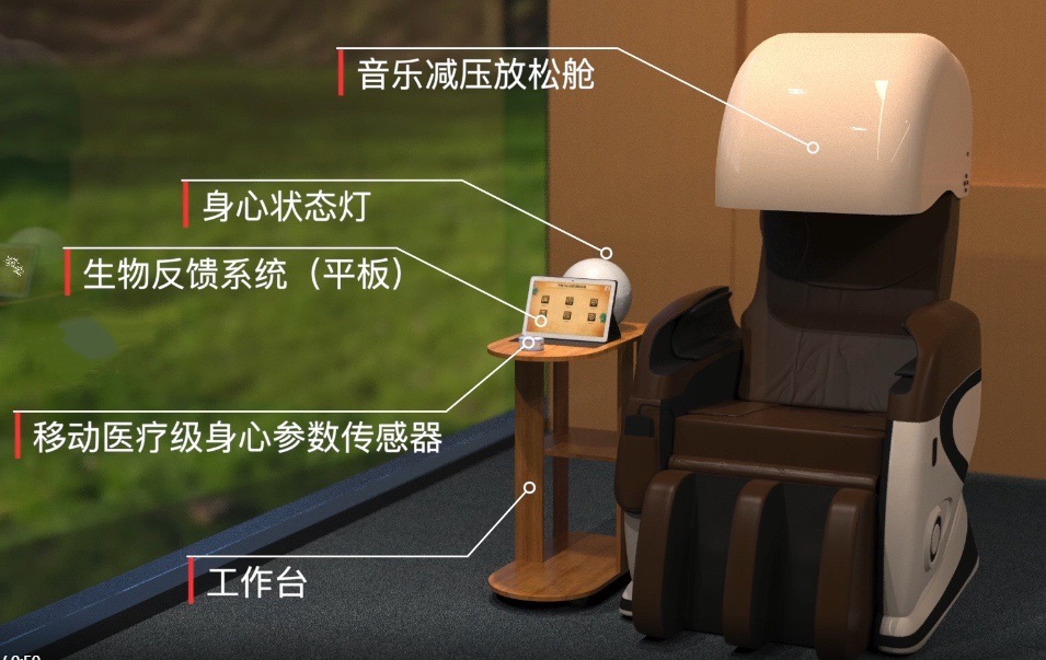 產(chǎn)品組合:太空艙頭罩、按摩放松椅、減壓訓(xùn)練反饋、身心平衡訓(xùn)練反饋、身心狀態(tài)燈、云平臺身心健康大數(shù)據(jù)。
