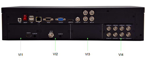 四路視頻輸入接口,全高清視頻接口,四路視頻接口類型可以是sdi、hdmi、vga、dvi或cvbs的任意組合。