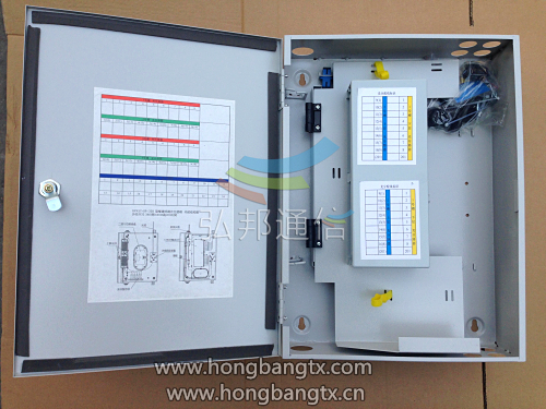 適配器型分纖箱除具有分配線功能,還預(yù)留分光功能,可靈活配置各種不同規(guī)格的盒式光分路器。弘邦通信