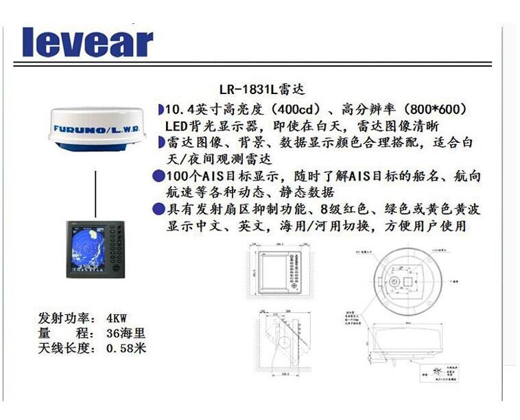 產(chǎn)品描述:發(fā)射功率4千瓦,量程36海里,天線長度58厘米
