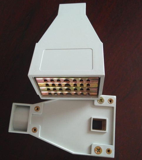 雙聯(lián)開拔器 本產(chǎn)品實用新型一種光纜固定器,含有底板、固定板、嵌纜蓋、嵌纜扣和固定柱,在底板的上端設(shè)有倒馬鞍型的嵌纜座,嵌纜座上設(shè)有馬鞍型的嵌纜蓋,嵌纜蓋與嵌纜座用螺絲連接;在嵌纜座下方底板的兩側(cè)設(shè)有側(cè)邊,嵌纜座下方與側(cè)邊的中間設(shè)置金屬固定板;固定板的上端設(shè)有嵌纜扣,固定板的下端設(shè)有鎧裝光纜的鋼絲固定柱,固定柱的柱體中間設(shè)有穿纜孔,固定柱中間的空腔內(nèi)設(shè)有穿纜孔壓纜螺栓;在底板的上下端分別設(shè)有固定孔;本實用新型可做成單纜和雙纜結(jié)構(gòu)的兩種光纜固定器,其積極效果是:結(jié)構(gòu)簡單、小巧美觀而且牢固,對戶外型光纜的固定效果好,施工操作和維護都很方便;此外,其制造方便,成本較低,易于大范圍推廣應(yīng)用。雙聯(lián)光纜固定座(固定器),用進口abs阻燃一級新塑料注射而成,上平面光纜墊板用優(yōu)質(zhì)不銹鋼板冷沖壓制成型,雙聯(lián)兩個光纖固定柱用優(yōu)質(zhì) 鋁合金,精工車制而成。 工作溫度:-5℃~40℃,相對濕度:≤85%(30℃時),大氣壓力:70~106kpa;