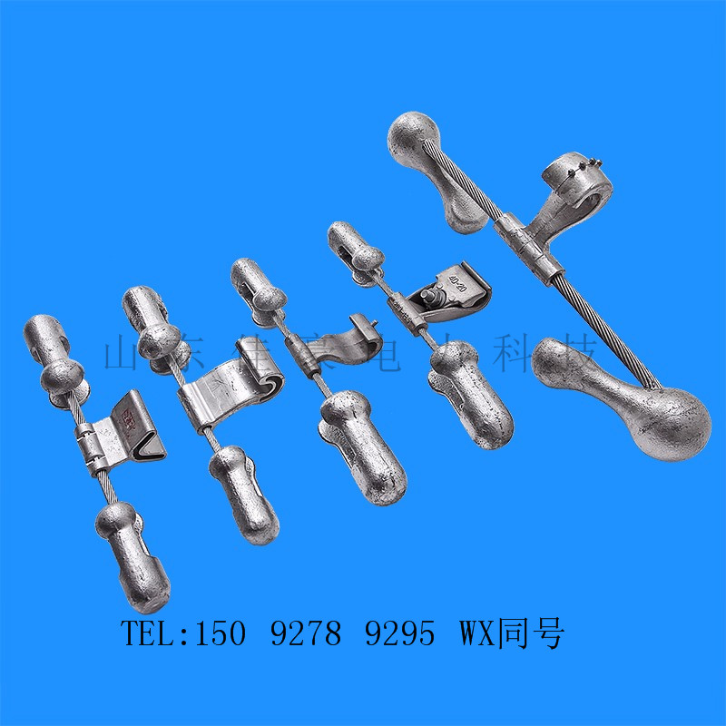 組成:鍍鋅鑄鐵錘頭、熱鍍鋅鋼絞絲、鋁合金線夾、不銹鋼螺栓等。
