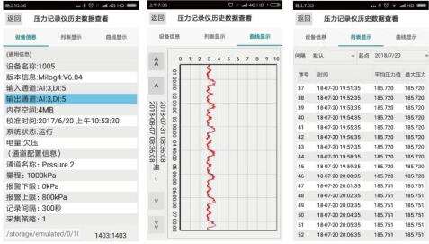 彌補(bǔ)了電子記錄儀數(shù)據(jù)沒有圓盤記錄儀壓力曲線直觀的問題;先現(xiàn)場將數(shù)據(jù)下載到u盤后,可直接在手機(jī)上查看儀表數(shù)據(jù),app可以從服務(wù)器上獲取遠(yuǎn)傳壓力記錄儀的歷史數(shù)據(jù);