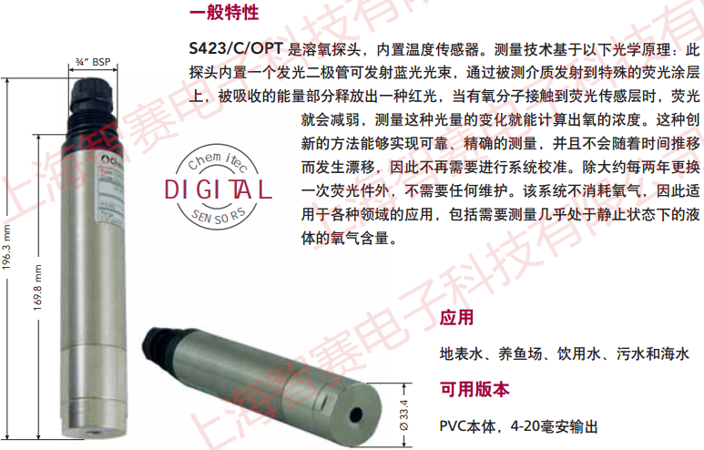 意大利chemitec水質在線測量溶解氧數(shù)字電極 s423/c/opt do傳感器