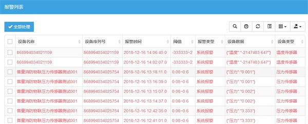2、平臺(tái)應(yīng)用管理面頁(yè):加入不同id編號(hào)的設(shè)備(如壓力、液位、溫度等)
