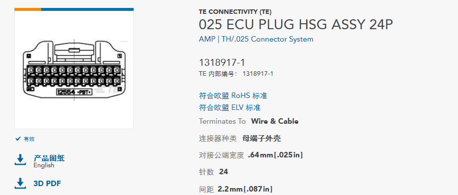 連接器護(hù)套泰科料號(hào)1318917-1母端子外殼24p連接器簡(jiǎn)介