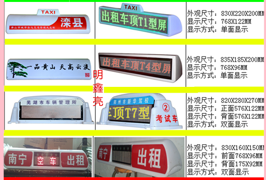 出租車led頂燈屏、出租車led車頂屏、出租車led顯示屏、出租車led電子屏、出租車led車內(nèi)后窗屏、出租車led走字屏。