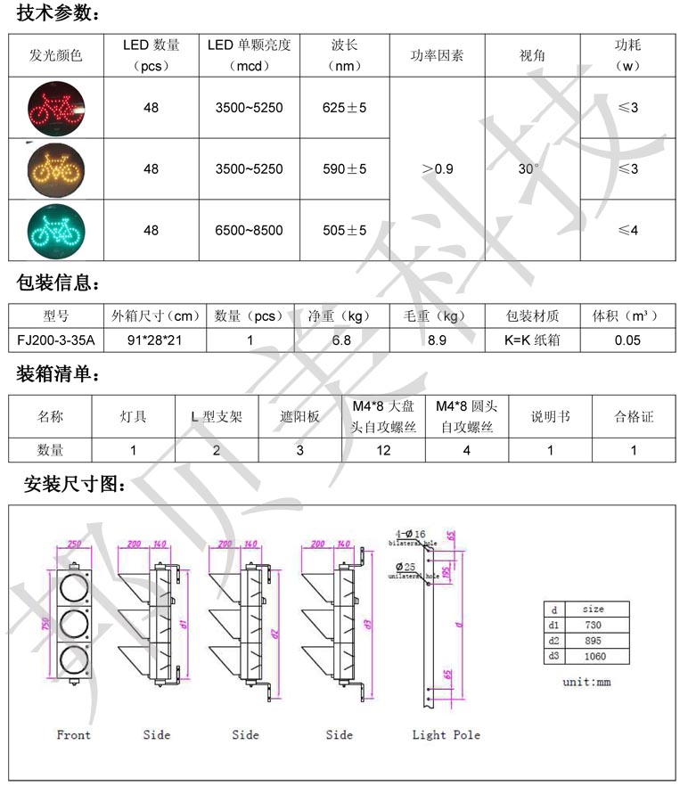 6、200mm紅黃綠非機(jī)動車道燈是采用進(jìn)口led芯片,發(fā)光亮度高、使用壽命長,采用恒流恒壓供電方式,性能穩(wěn)定;外殼采用聚碳脂材料壓鑄而成,堅固耐用、防腐蝕、防水防塵且絕緣性能好,且結(jié)構(gòu)新穎。