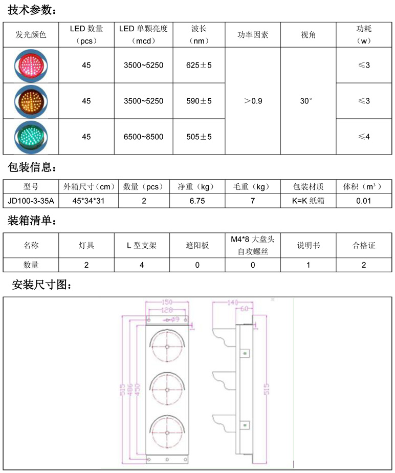 6、100mm紅黃綠滿盤交通燈是采用進(jìn)口led芯片,發(fā)光亮度高、使用壽命長,采用恒流恒壓供電方式,性能穩(wěn)定;箱體外殼使用五金箱體。