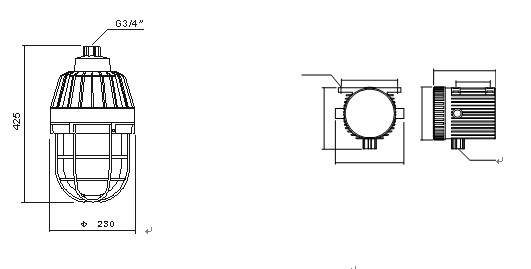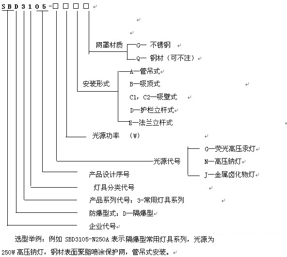 1. 防爆型式隔爆型或粉 塵防爆型,適用于爆炸危險(xiǎn)場(chǎng)所照明使用。