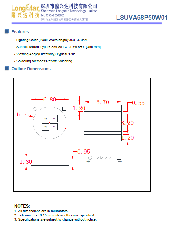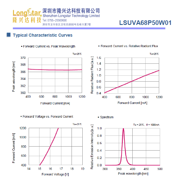 365nm6868大功率固化紫外uvaled燈珠lsuva68p50w01
