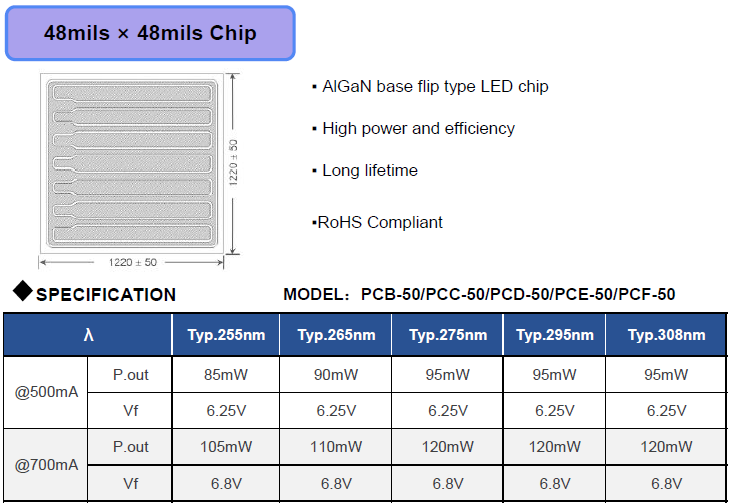 大功率uvc芯片48*48mil消毒殺菌-pw進口