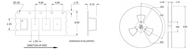 將smd 產(chǎn)品包裝在紙箱里以便裝運(yùn),如下表所述;符合磁帶標(biāo)準(zhǔn)eia-481 和 iec-60286.