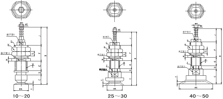 pats立向接管附緩沖薄型吸盤產(chǎn)品規(guī)格尺寸圖表: