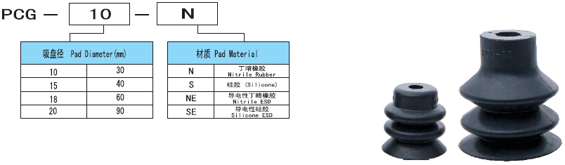 pcg三層風琴式真空吸盤產(chǎn)品訂購圖: