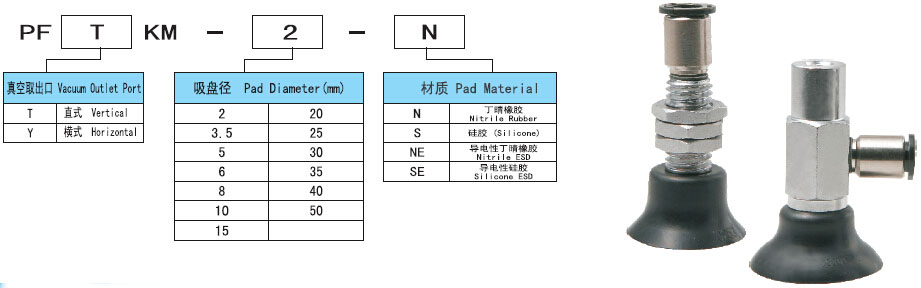 pftkm/pfykm帶金屬支架及快速接管吸盤特性: