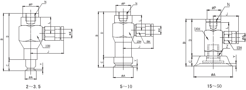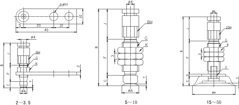 pftkm/pfykm帶金屬支架及快速接管吸盤外形尺寸圖: