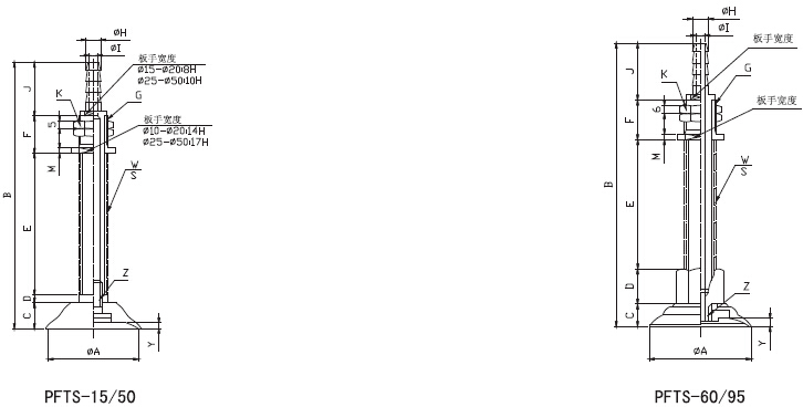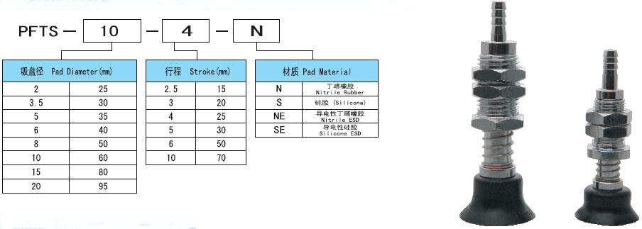 pfts立向接管附緩沖標準吸盤訂購圖:
