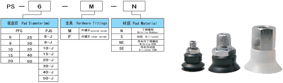 1.吸盤單體有pfg和pjg系列兩種可選