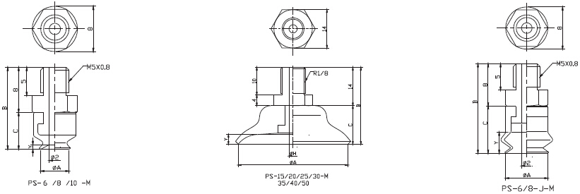 ps簡(jiǎn)易型附螺絲連接吸盤外形尺寸圖: