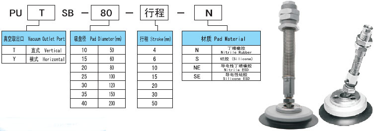 putsb/puysb帶金屬支架附緩沖搖擺吸盤具備特點(diǎn):