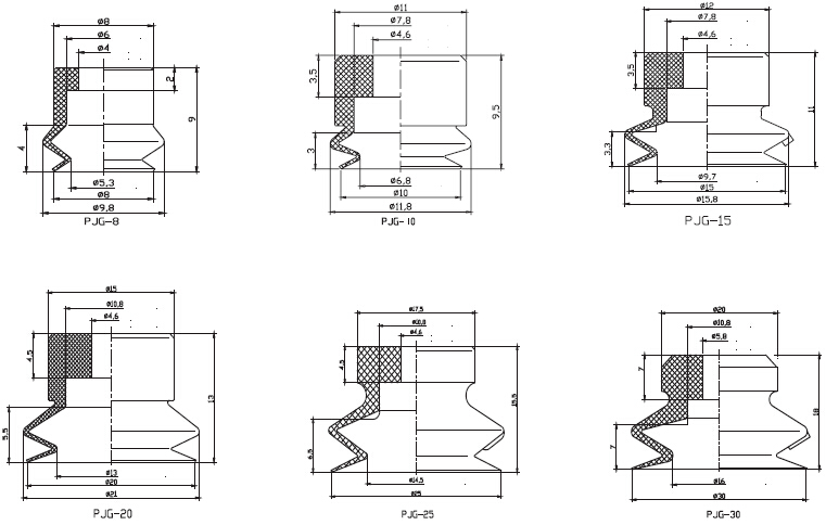 pjg吸盤用的盤芯,在原有的皺褶吸盤pjg的基礎(chǔ)上,安 裝了peek制的配件,防止了靜電的產(chǎn)生,和防止了橡膠制的吸盤對(duì)吸附物體的粘貼,以防止吸附痕跡的產(chǎn)生