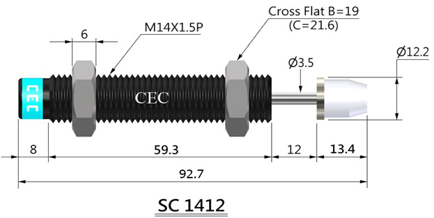 sc1412自動補償型油壓緩沖器尺寸圖: