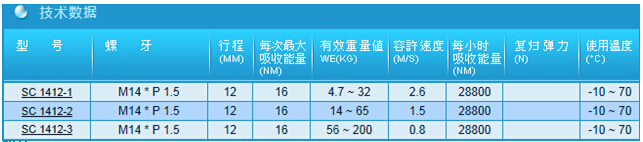 sc1412自動補償型油壓緩沖器詳細參數(shù):