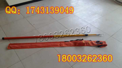 異物桿是用來清除掛在供電線路上的異物(如樹枝 塑料袋 風箏等)的專用工具,其功能可以挑、鉤、鋸、打。該工具用環(huán)氧樹脂玻璃纖維管材料為桿身,絕緣性能好。重量輕,可以伸縮,攜帶方便,桿頭部刀據(jù)和鉤尖用不銹鋼材料制作,不但防銹,而且鋒利。更換方便。伸縮機構是定位銷鎖緊,伸長時拉出,當拉到看見刻線時停住,而后左右轉動,轉到一定角度,定位銷會自動彈出,從而定位鎖緊,當收縮時用手指按下定位銷同時往里推內管即可縮短。