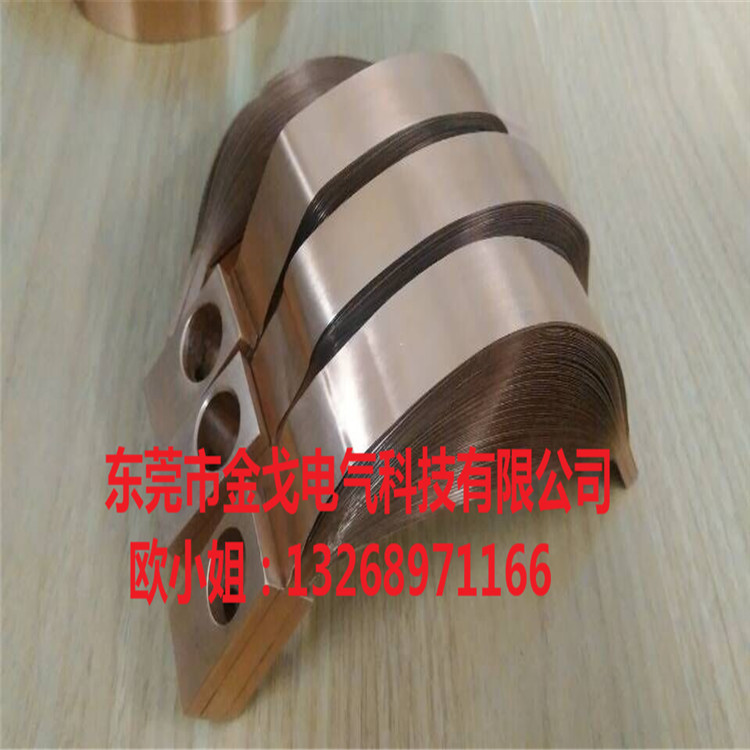 工藝制作:擴(kuò)散焊軟連接壓焊是將多層銅箔疊片部分壓在一起,采用分子擴(kuò)散焊,通過(guò)大電流加熱壓焊成型。銅箔:0.05mm至0.5mm厚。