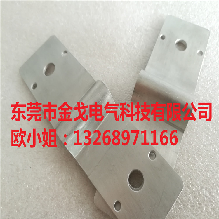 鋁箔軟連接采用優(yōu)質(zhì)0.05~0.3mm厚鋁箔,常規(guī)使用0.1厚鋁箔,上下表面貼0.1厚純鎳片,或0.1厚鍍鎳銅片,將疊片部分壓在一起,兩端或者打孔部分采用高分子擴(kuò)散焊,通過大電流加熱壓焊成型。中間套熱縮管保護(hù),大尺寸異形產(chǎn)品,中間采用浸塑工藝
