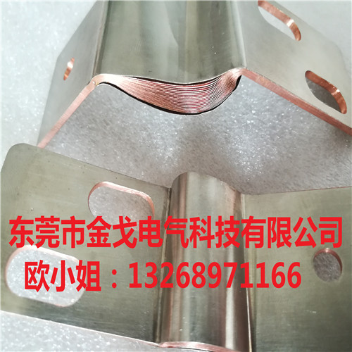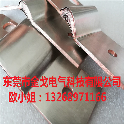 工藝制作:擴散焊軟連接壓焊是將多層銅箔疊片部分壓在一起,采用分子擴散焊,通過大電流加熱壓焊成型。銅箔:0.05mm至0.5mm厚。