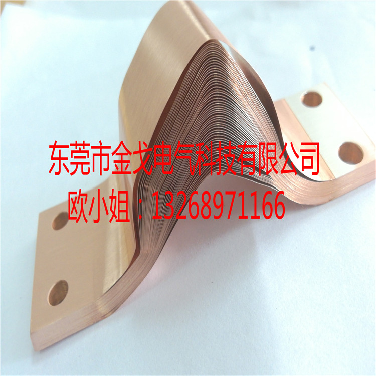 (3)釬焊是將0.03mm-0.5mm厚的銅箔疊片部分壓在一起,采用銀基釬焊料與扁銅塊對(duì)焊成型,接觸面可根據(jù)用戶要求鍍錫、銀、開(kāi)孔等