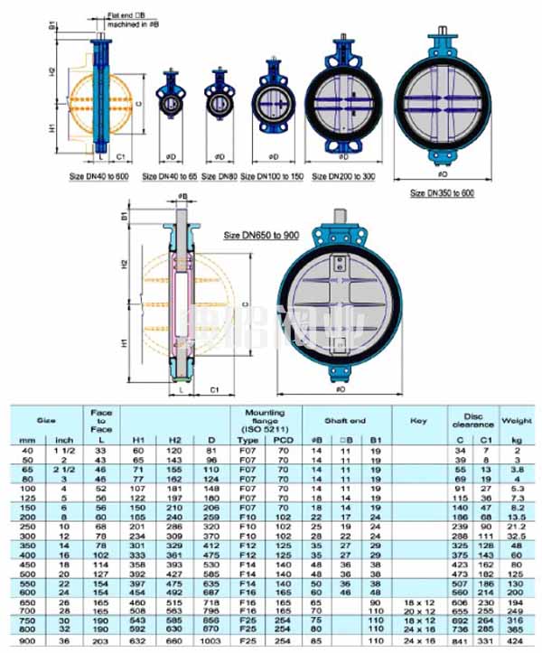 vf-730蝶閥結(jié)構(gòu)尺寸: