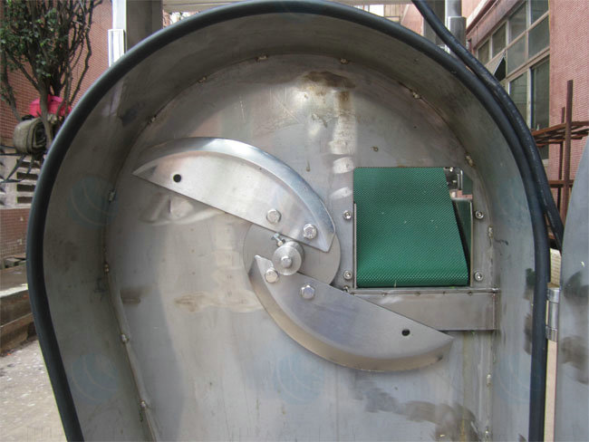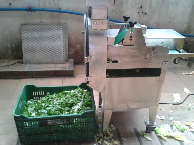 葉類蔬菜:由輸送帶輸送原料,轉(zhuǎn)刀速度和皮帶速度分別有變頻器獨立控制,切菜尺寸可以調(diào)節(jié) 1 - 60 mm。