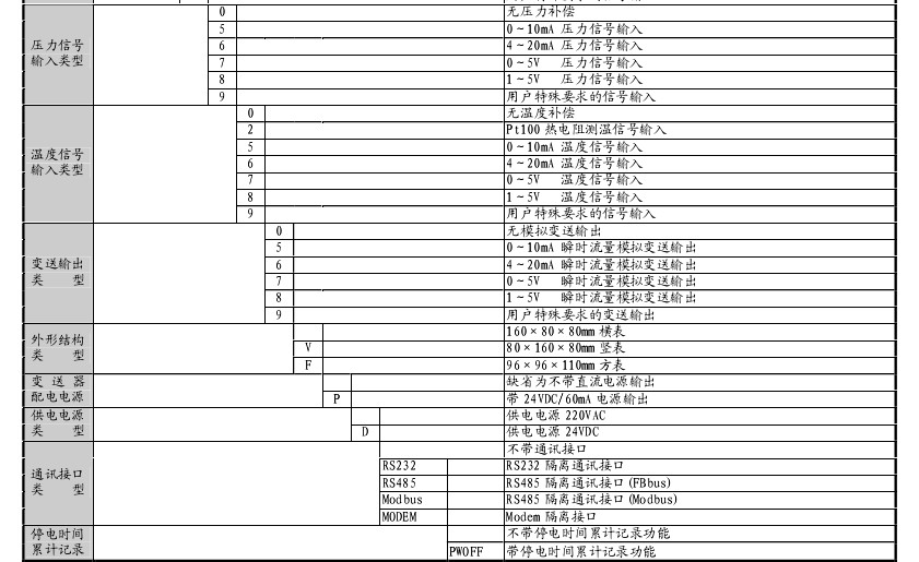 ※ 溫度補償輸入可接受:pt100熱電阻信號或0-10ma,4-20ma,0-5v,1-5v信號。